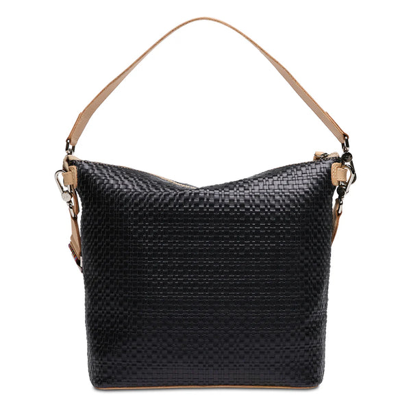 - Includes two detachable straps: a Diego natural leather shoulder strap and an adjustable woven crossbody strap