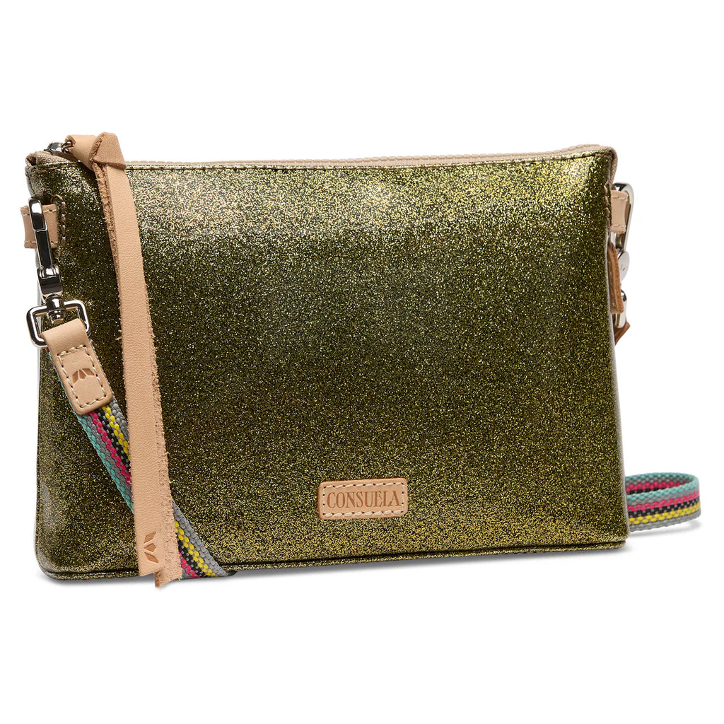 • 8 ¼" (W at the base), 9 ¼” (W at the top) x 5 ¾” (H) x 2" (D), 14 ½”-27 ½” adjustable crossbody strap drop
