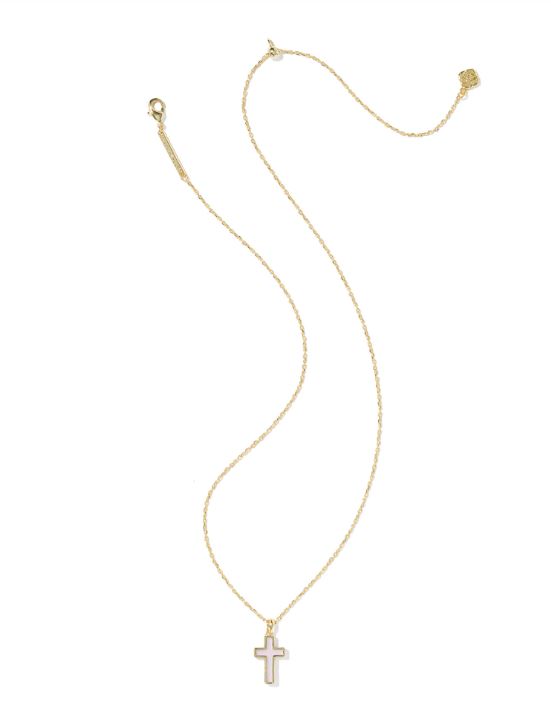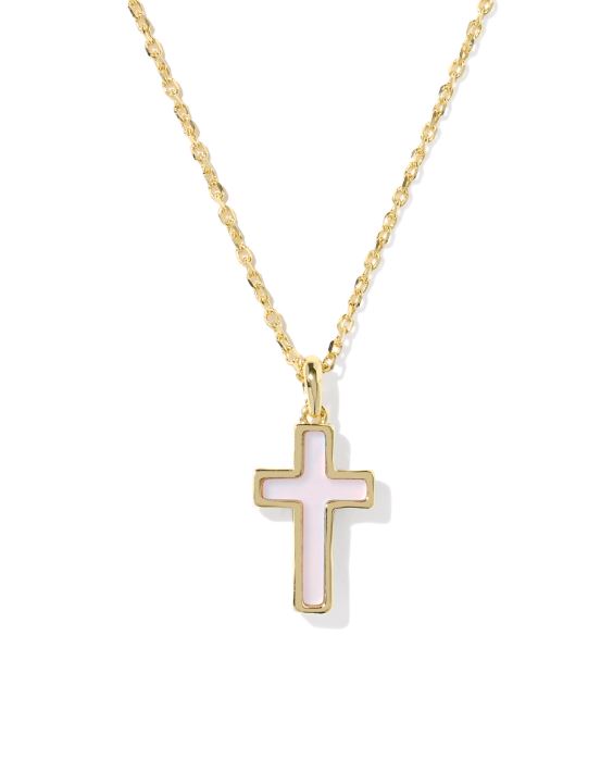 Kendra Scott Cross Pendant Necklace in Gold & Matte Blush Pink Dichroic Glass