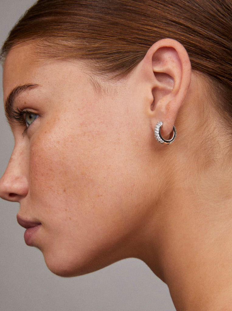 The Mikki Pave Huggie Earrings take our everyday essential and elevate them with a touch of sparkle. Featuring a row of gleaming pave crystals, these petite earrings are the minimalist statement everyone will love.