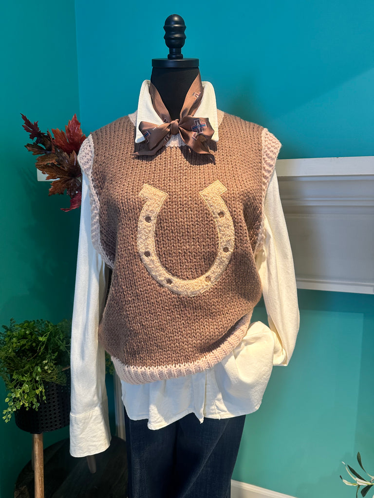 • 2-Tone Crochet Sweater Vest with Horseshoe Design