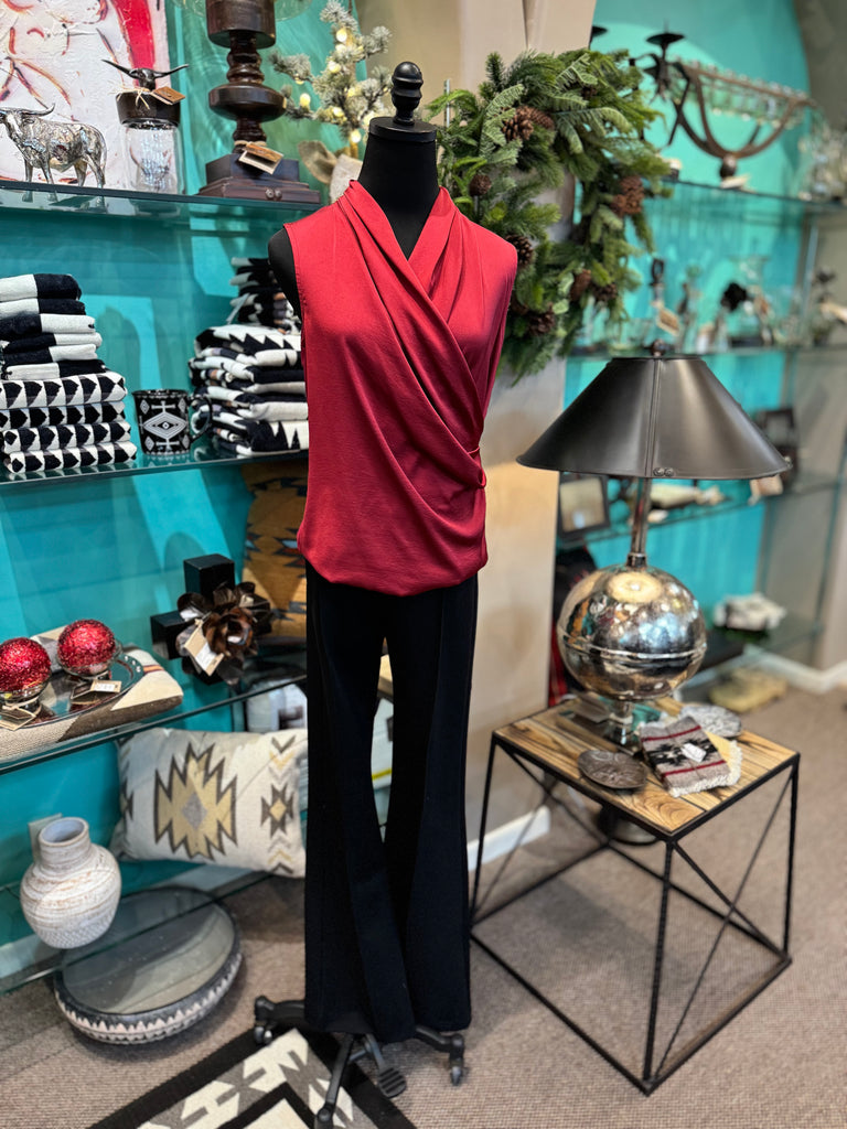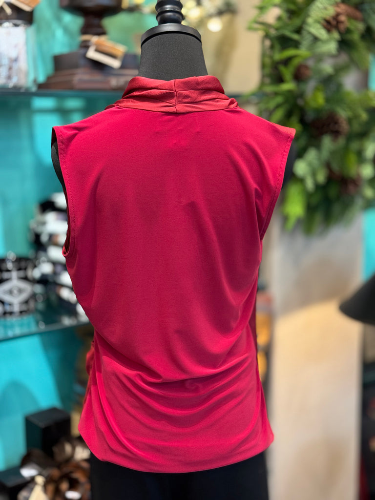 • Matte satin sleeveless top with knit back makes a great layering piece or is stunning on its own