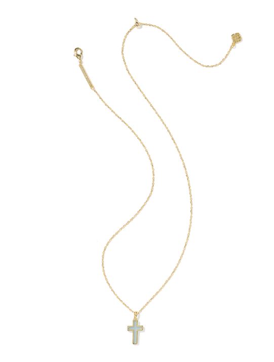 Kendra Scott Cross Pendant Necklace in Gold & Matte Light Blue Dichroic Glass