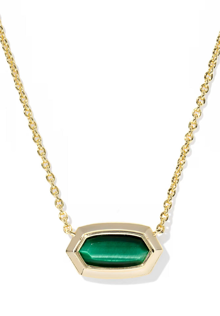 Kendra Scott Elisa Bezel Gold Short Pendant Necklace in Green Tigers Eye