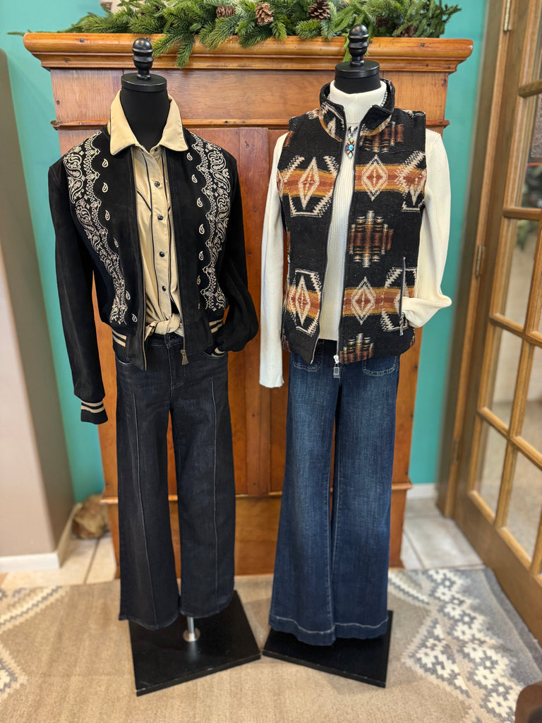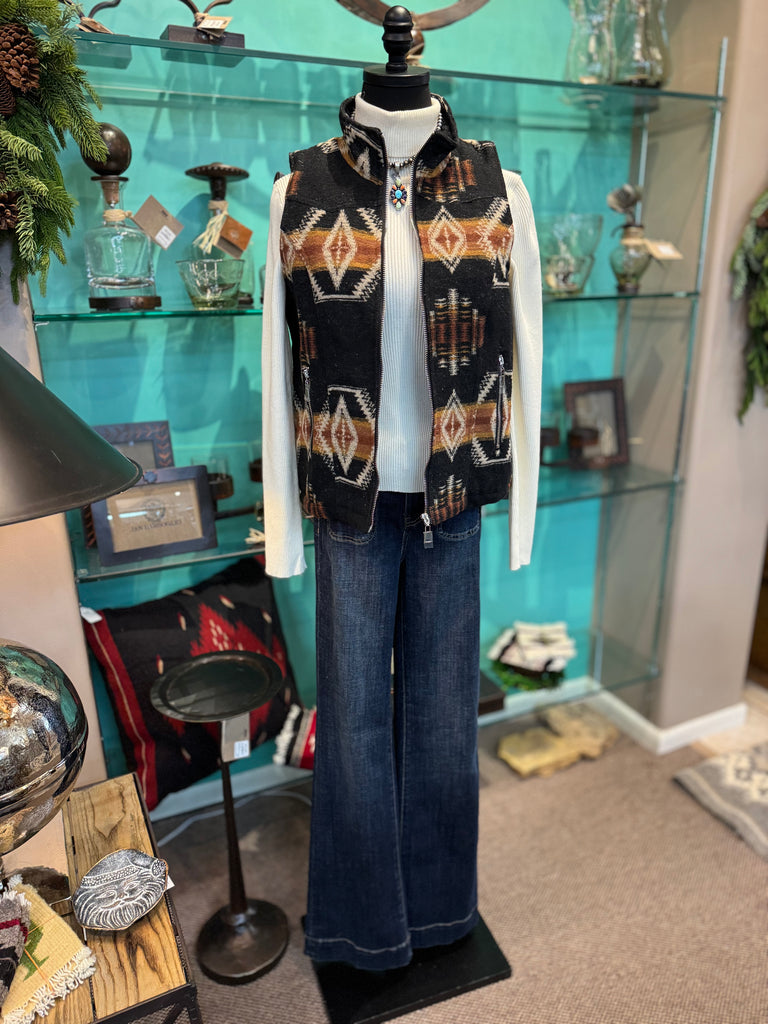 • Aztec print front zip brushed poly vest with quilted lining is super soft and cozy