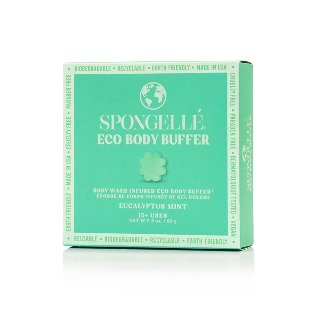 Spongellé’s® Eucalyptus Mint Eco Body Buffer is a biodegradable, all-in-one Body Wash Infused Buffer® that cleanses, exfoliates, massages, and nourishes the skin with every use. Infused with a crisp Eucalyptus Mint fragrance with notes of Meyer lemon, lavender, and tonka bean, it delights the senses while promoting silky-smooth skin. It’s also enriched with skin-loving ingredients like cocoa, mango, and shea butters, plus extracts of tangerine, aloe vera, eucalyptus, and coconut for added nourishment. This sustainable, dermatologist-tested buffer creates a rich, luxurious lather for the ultimate shower experience. Sulfate-free, paraben-free, cruelty-free, and vegan, it’s a reusable, eco-conscious way to indulge in spa-worthy self-care. Good for 15+ uses.